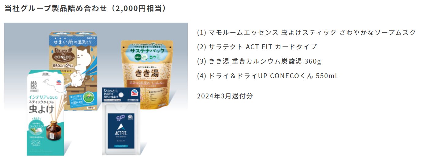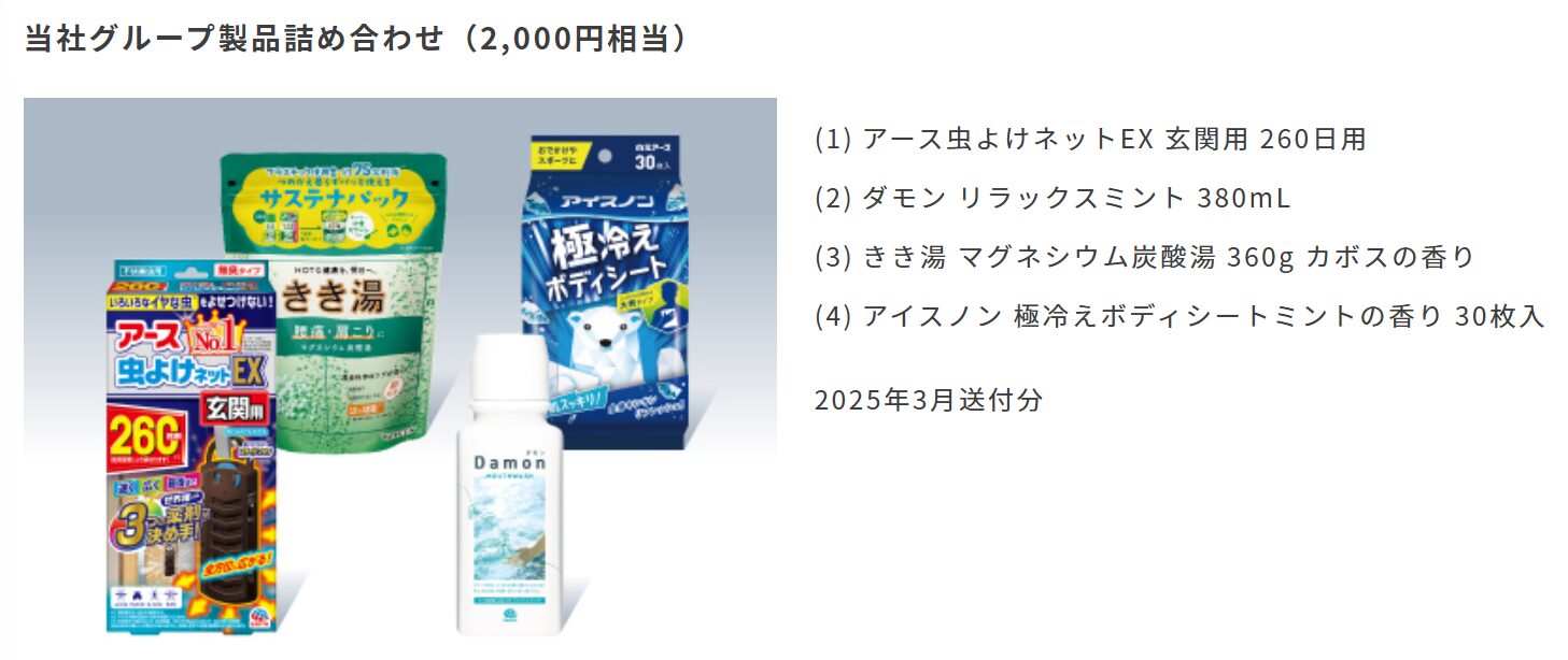 アース製薬の株主優待詳細
