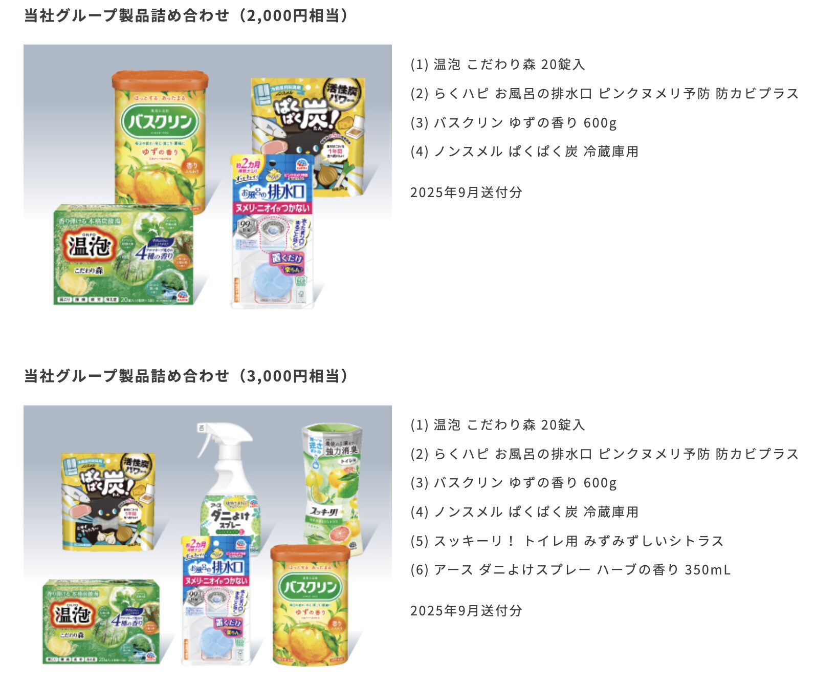 - 入浴剤や芳香剤や掃除製品なので使いやすい優待内容です