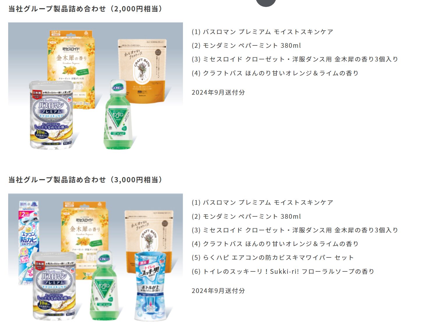 優待品には「バスロマン」や「モンダミン」などの主力製品が含まれることが多いです。普段から愛用している方はもちろん、新しい香りを試してみたい方にとっても、現物が届くのは大きなメリットです。