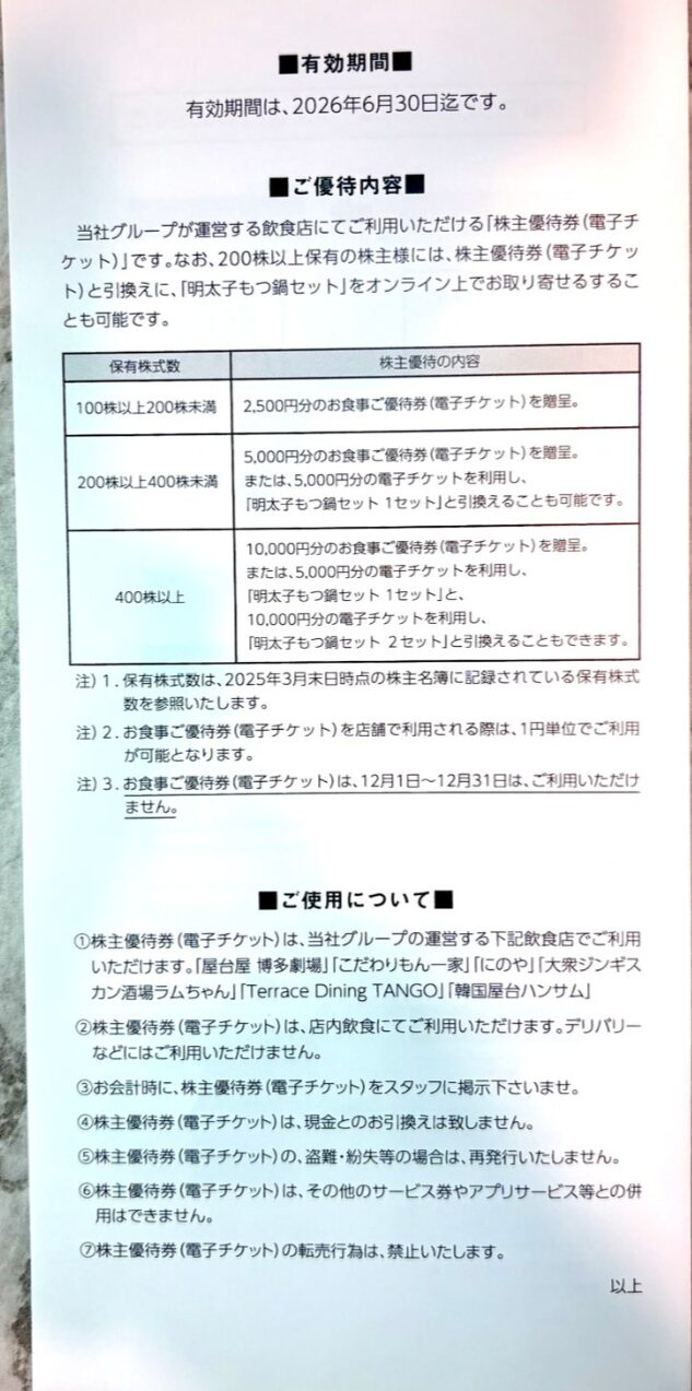| 今回優待の権利日 | 今回は2025年3月権利分の優待 |