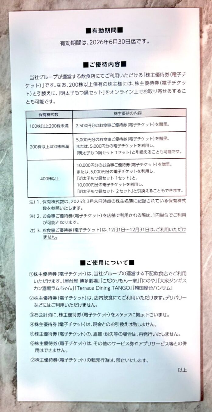 100株 2,500円分食事券 です!