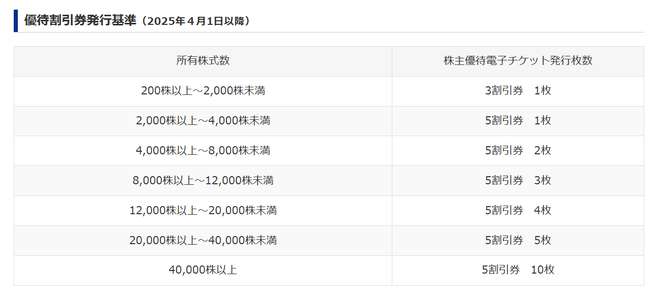 2,000株を3年以上保有で「50%割引券×1枚」を追加贈呈