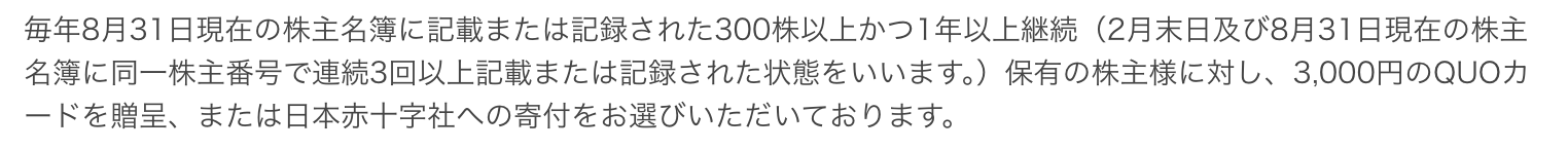 - クオカードがいただける優待内容です