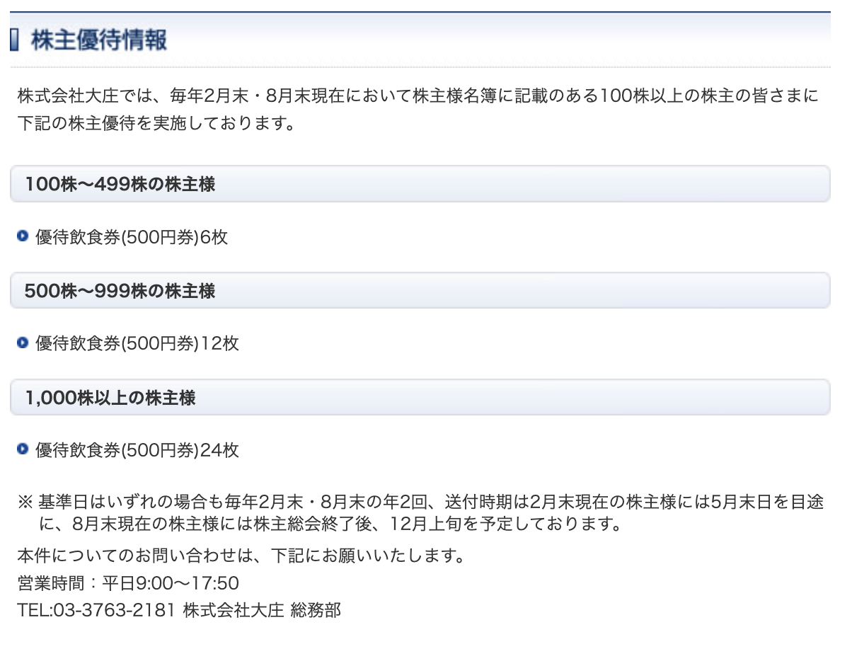 大庄の株主優待取得は下記の方におすすめです