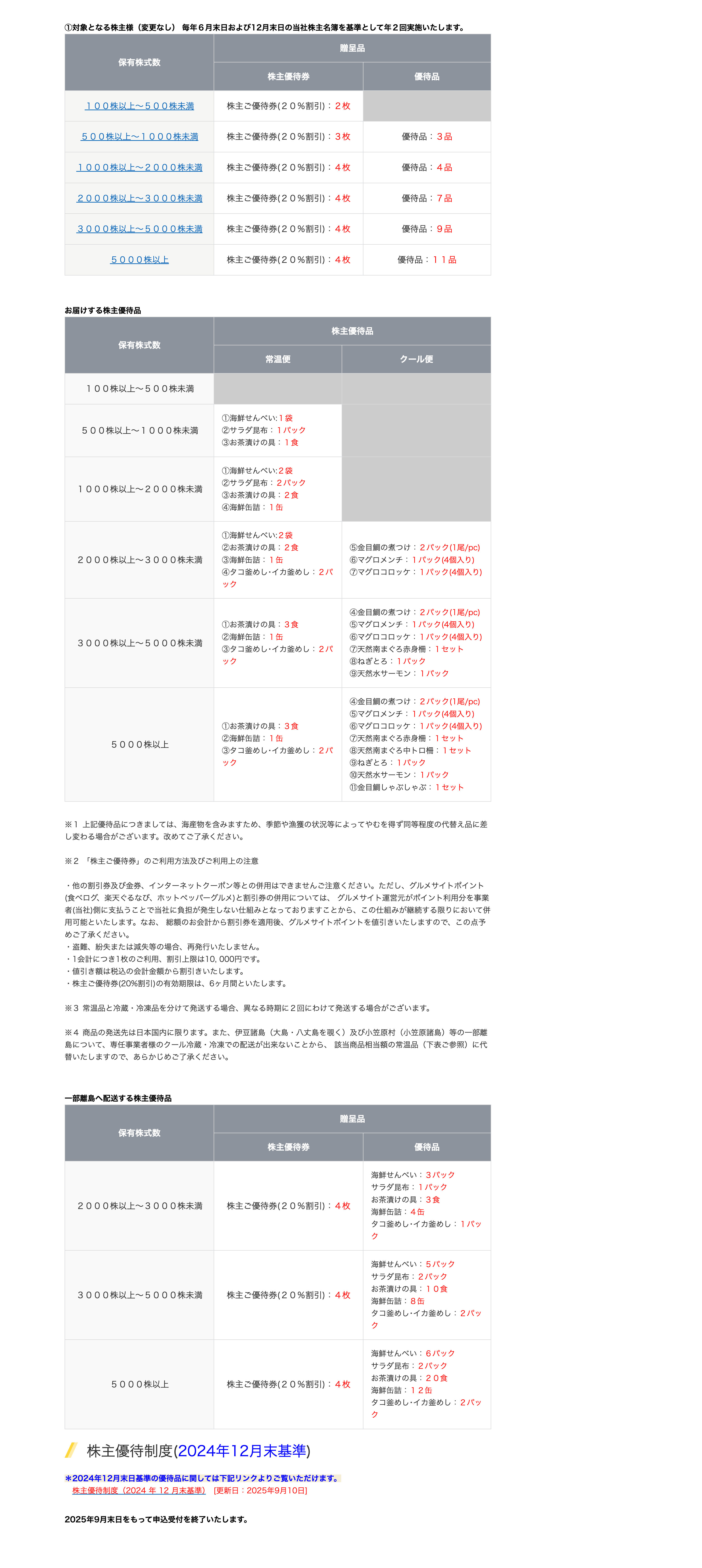 - 2024年6月末より優待内容が改悪になっています
