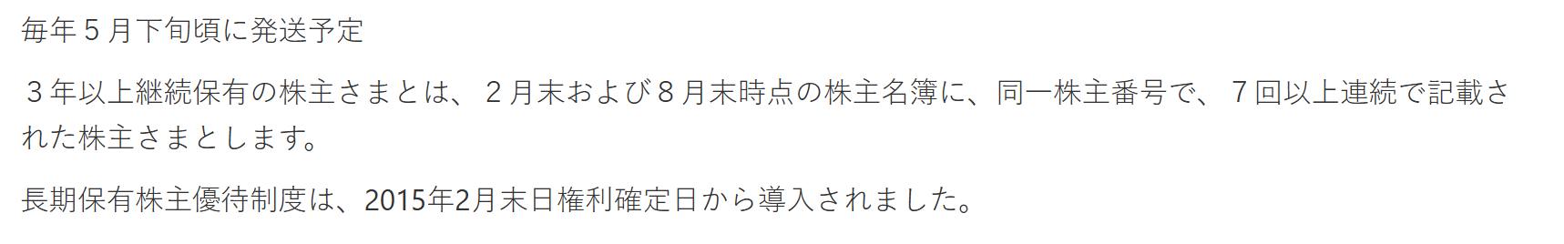 - 優待獲得日:2月末日(長期優待は2月のみ)