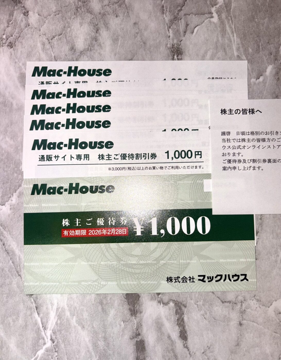 - 「マックハウスでの買物券」がいただける優待内容です