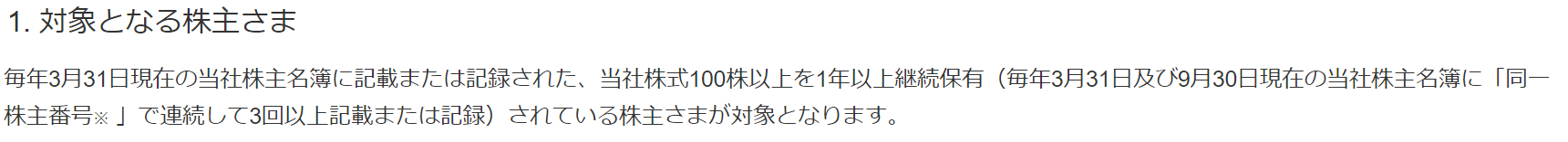 - 優待をいただくには1年以上の長期条件が必須となります