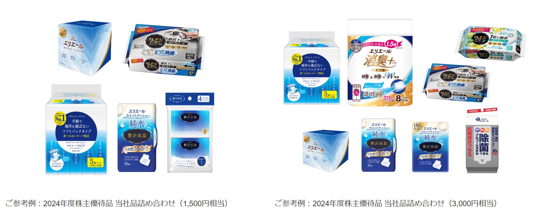 | 優待内容 | エリエールなどの日用品詰め合わせ |